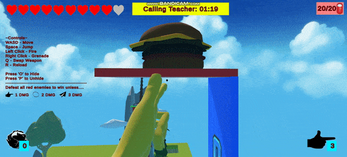 Fingergun is a friendly first-person shooter where the player wields various odd-looking toys as their weapon in a role-playing imaginary fantasy world.